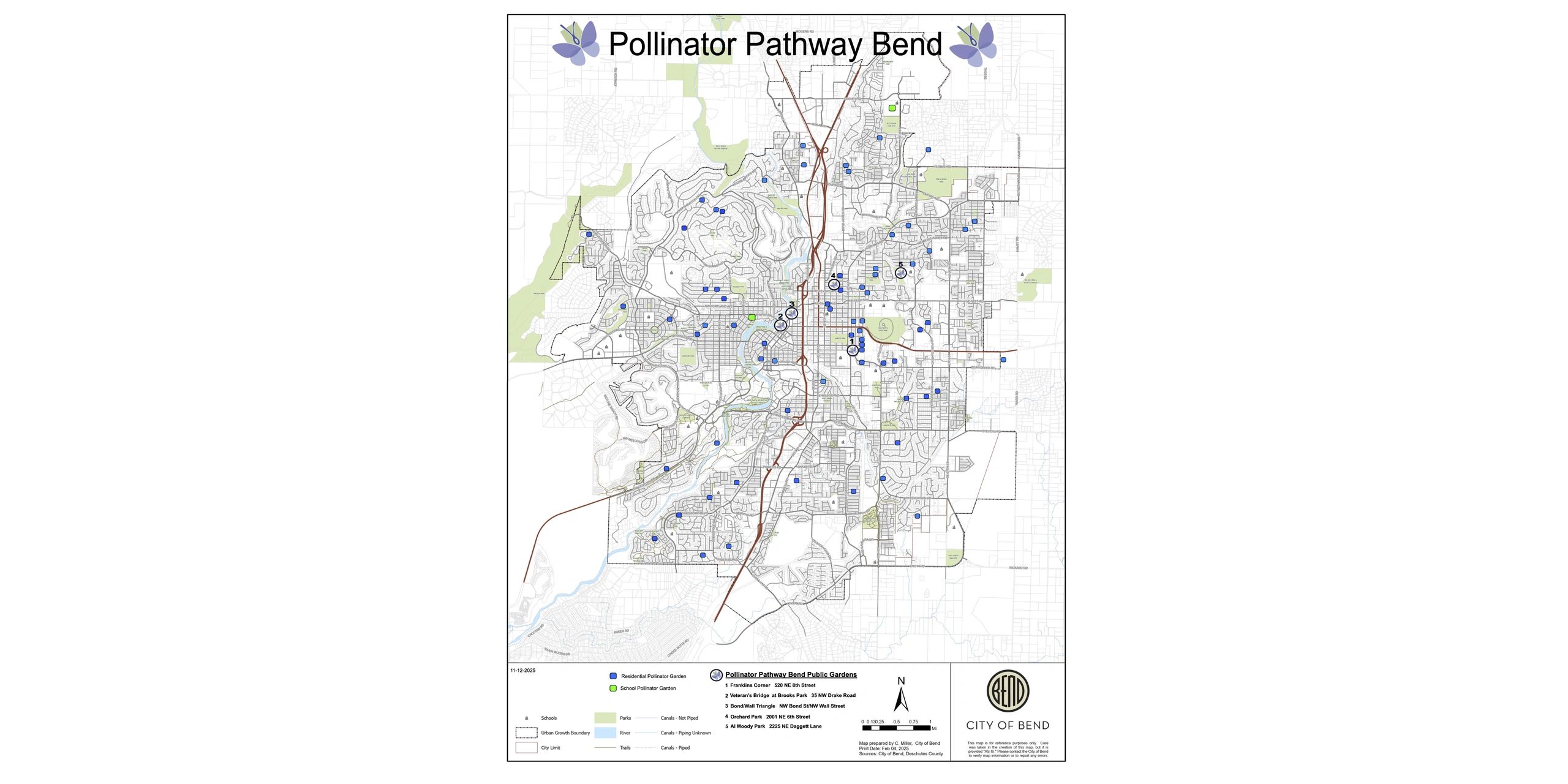 This riverfront park is the gateway to one of Bend’s historic neighborhoods. Find native pollinator habitat alongside the sidewalk on Newport Avenue, across the street from Mirror Pond. Sponsored by Oregrown.